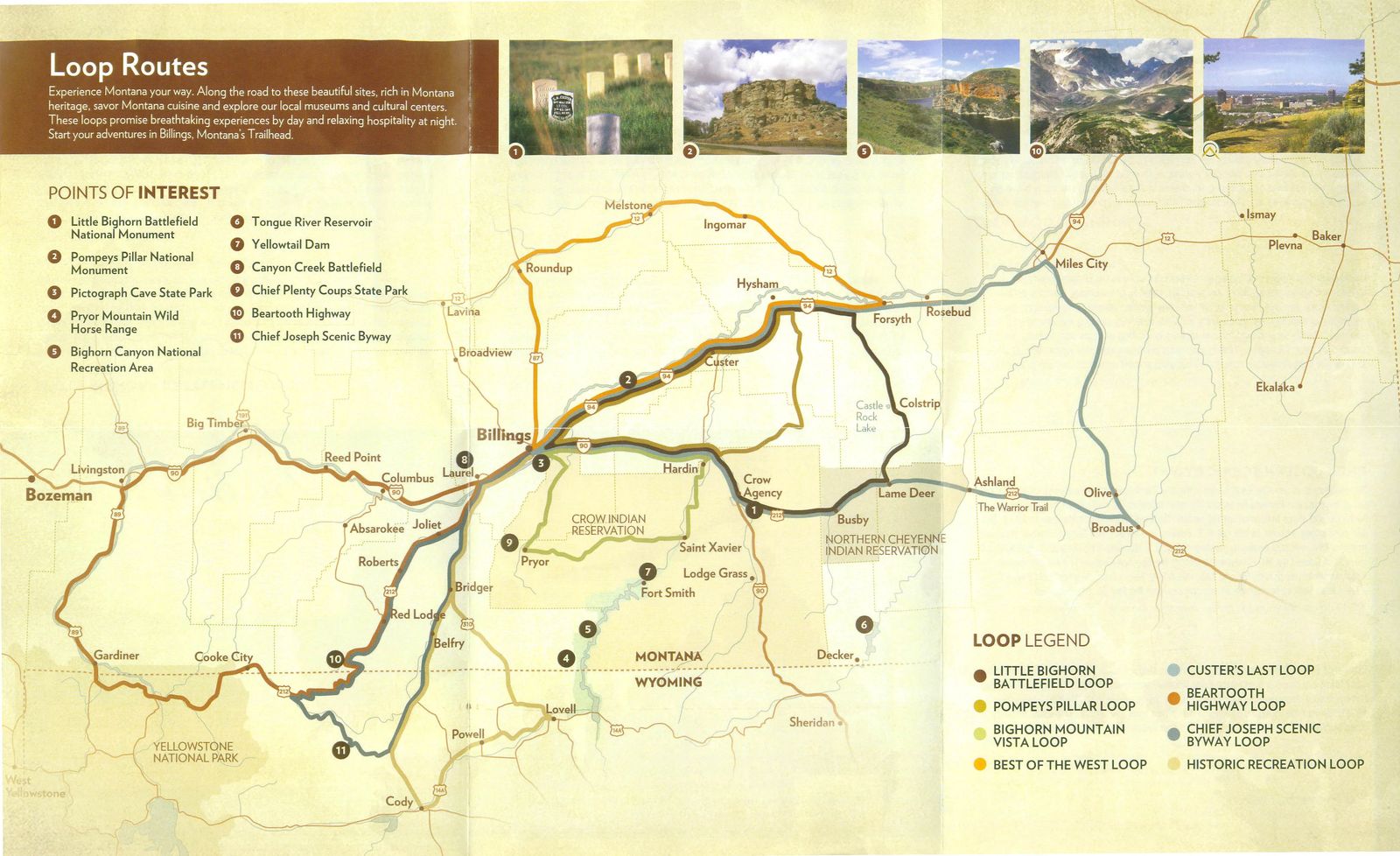 The Billings Area and Southeastern Montana (Map Courtesy of Custer Country/Southeast Montana Tourism)